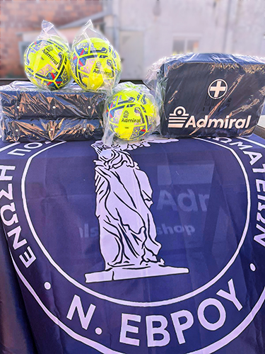Στο πλαίσιο των πρωτοβουλιών που στηρίζουν τον αθλητισμό, η εταιρεία μας δώρισε περισσότερες από 600 ποδοσφαιρικές μπάλες Admiral και 40 φαρμακευτικά kits στους ποδοσφαιρικούς συλλόγους του Έβρου που ζημιώθηκαν από τις πυρκαγιές.
