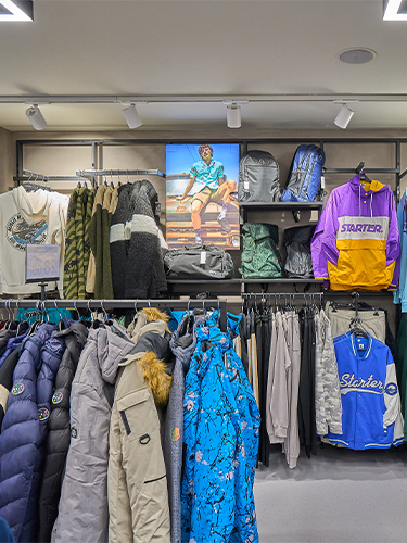 Μπορείς να το επισκεφθείς και να διαλέξεις από τη μεγάλη μας συλλογή ανάμεσα σε αθλητικά/casual ρούχα, παπούτσια, είδη σπορ, αξεσουάρ και αθλητικό εξοπλισμό των κορυφαίων brands Admiral, Kappa, Maui and Sons, Peak και Starter!